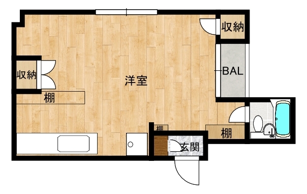 内装リフォーム後の入居となります。少し広めのワンルームです。